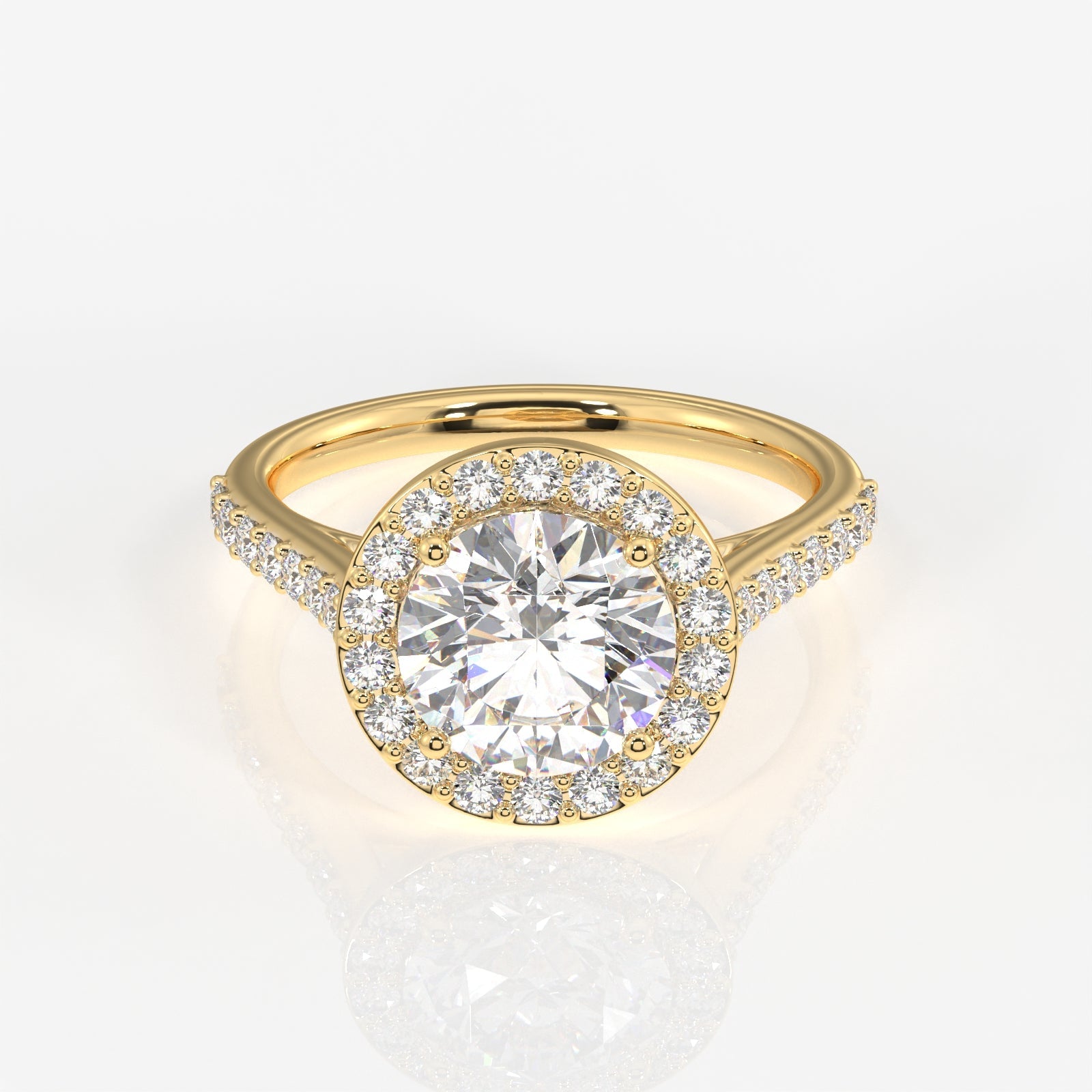 Round Cut Moissanite Diamond Halo Engagement 14k Gold Ring