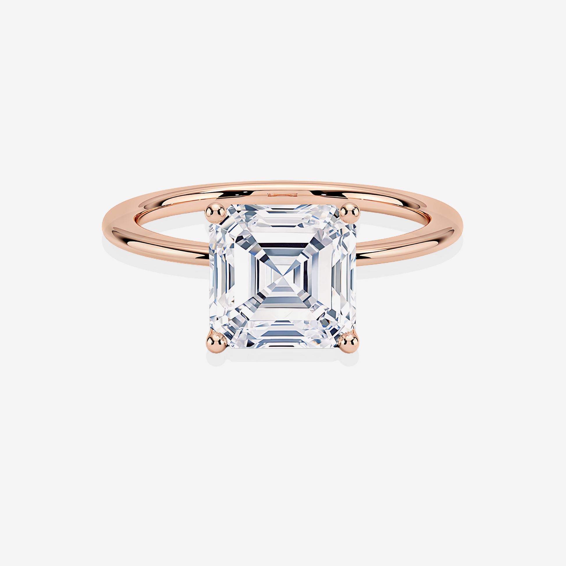 Asscher Cut Lab Grown Diamond Classic Solitaire Engagement 14K Gold Ring